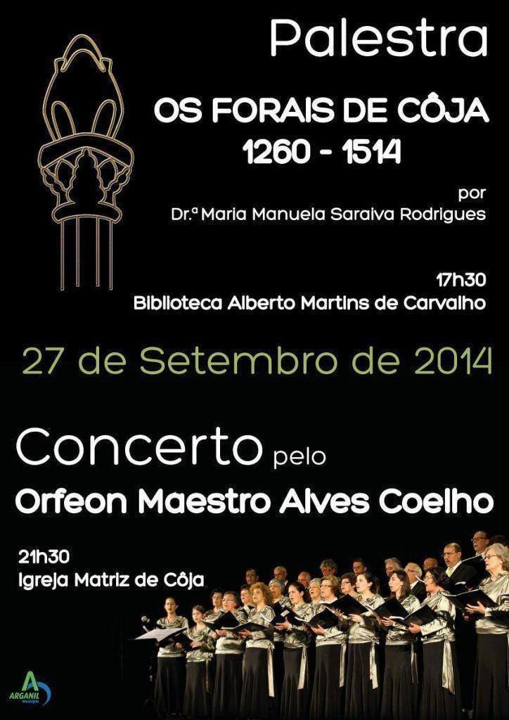 No seguimento desta palestra e culminando assim um ano de Comemorações de Foral em Coja, terá lugar na Igreja Matriz, pelas 21h30, um concerto pelo Orfeon Maestro Alves Coelho, que entre diversificados estilos trará até ao público peças de carácter distinto, a capella e com acompanhamento de órgão.