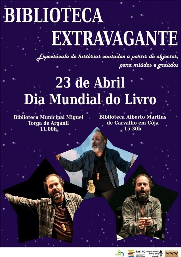 O espetáculo “Biblioteca Extravagante” decorrerá no dia 23 de abril, às 11h00, na Biblioteca Municipal de Arganil e às 15h30 na Biblioteca Alberto Martins de Carvalho em Coja.