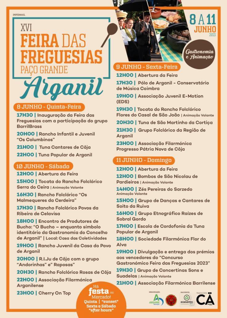 Um dos eventos mais esperados do ano em Arganil, está de regresso para a sua 16ª edição. Falamos, pois, da Feira das Freguesias – Mostra Gastronómica, espaço privilegiado de convívio, cultura e tradição, que põe em grande destaque a gastronomia típica de cada umas das freguesias, numa festa popular de grande expressão concelhia.