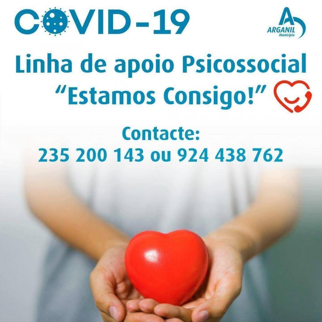 Para atender munícipes em situação de isolamento social, que careçam de ajuda para lidar com a evolução da pandemia do Covid-19, o Município de Arganil disponibiliza a Linha de Apoio Psicossocial “Estamos consigo!”, acessível através dos números de telefone: 235 200 143 ou 924 438 762.