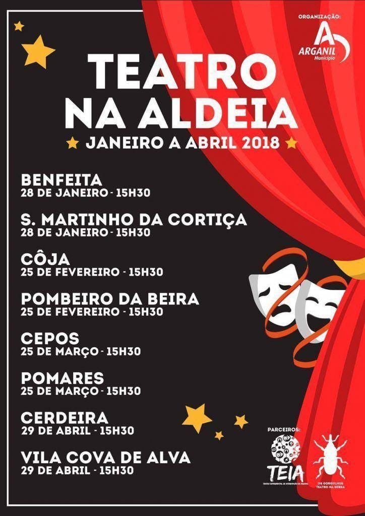 A iniciativa, que arranca já no próximo dia 28 de janeiro e que dá pelo nome “Teatro na Aldeia”, iniciará o seu périplo pela freguesia de Benfeita e São Martinho da Cortiça e posteriormente passará pelas localidades de Coja e Pombeiro da Beira (25 de fevereiro); Cepos e Pomares (25 de março) e Cerdeira e Vila Cova de Alva (29 de abril), tendo todos os espetáculos início pelas 15h30.